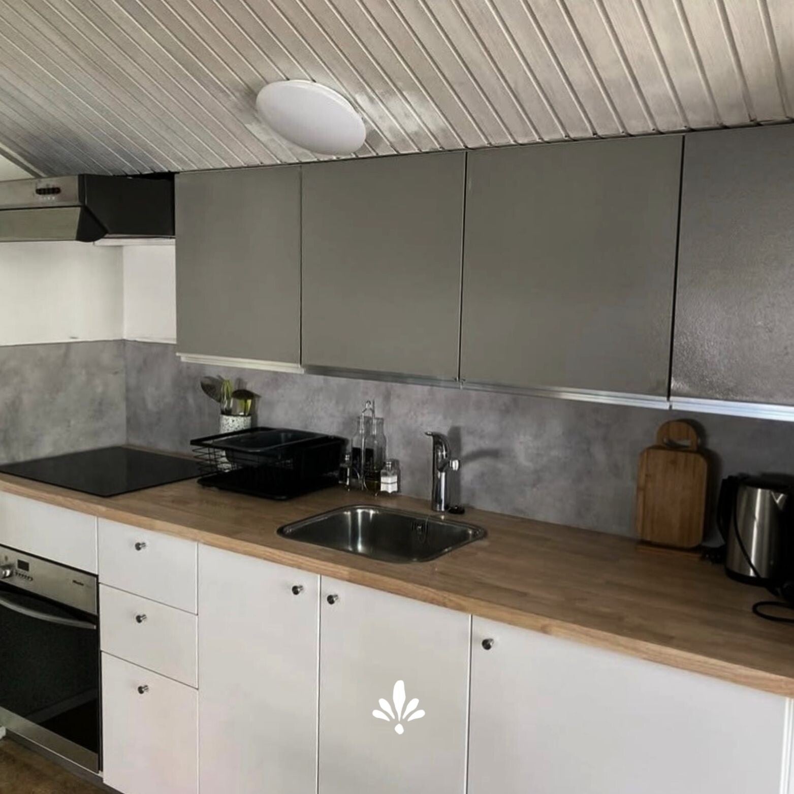 In our kitchen you find everything you need to prepare delicious meals. Whether you want to cook an elaborate dinner or make a quick lunch, everything you need is there. We have a fridge, a stove, an oven and a microwave oven.